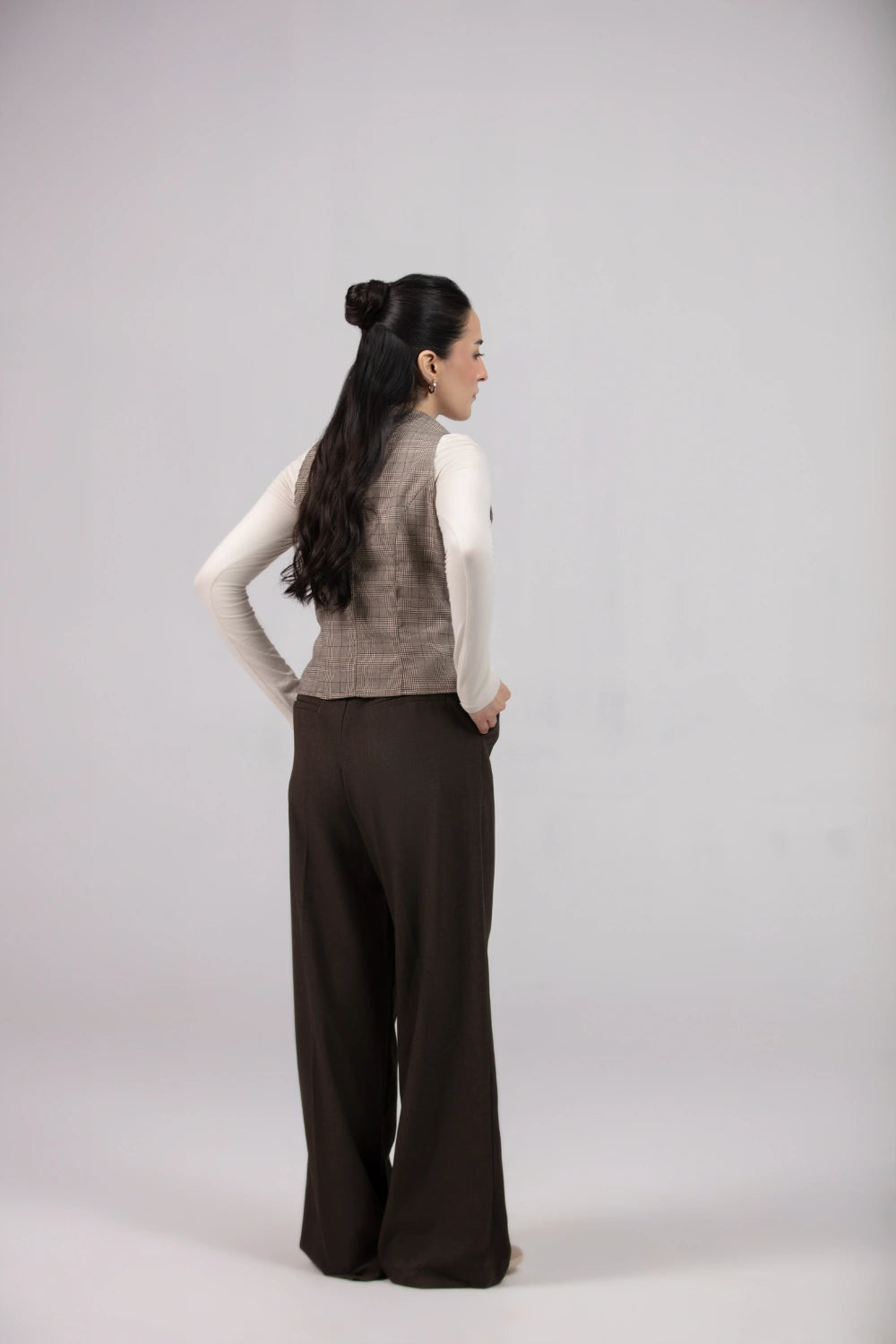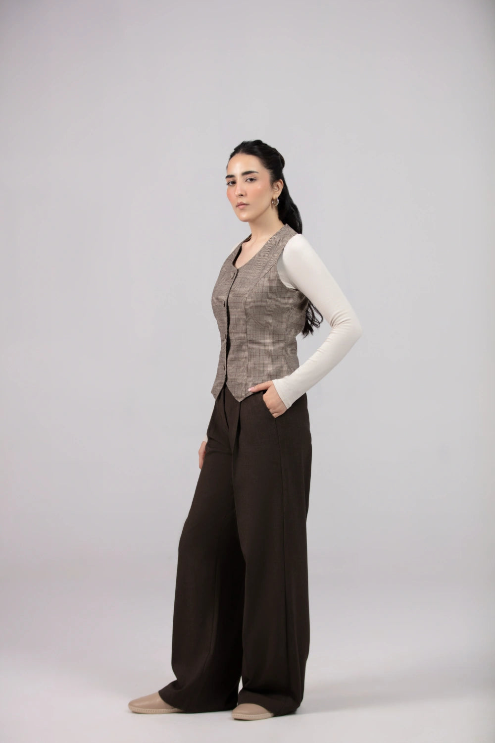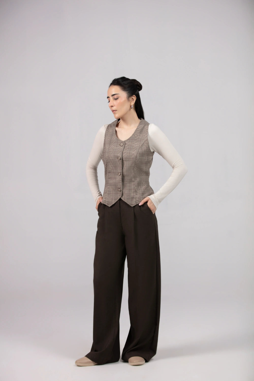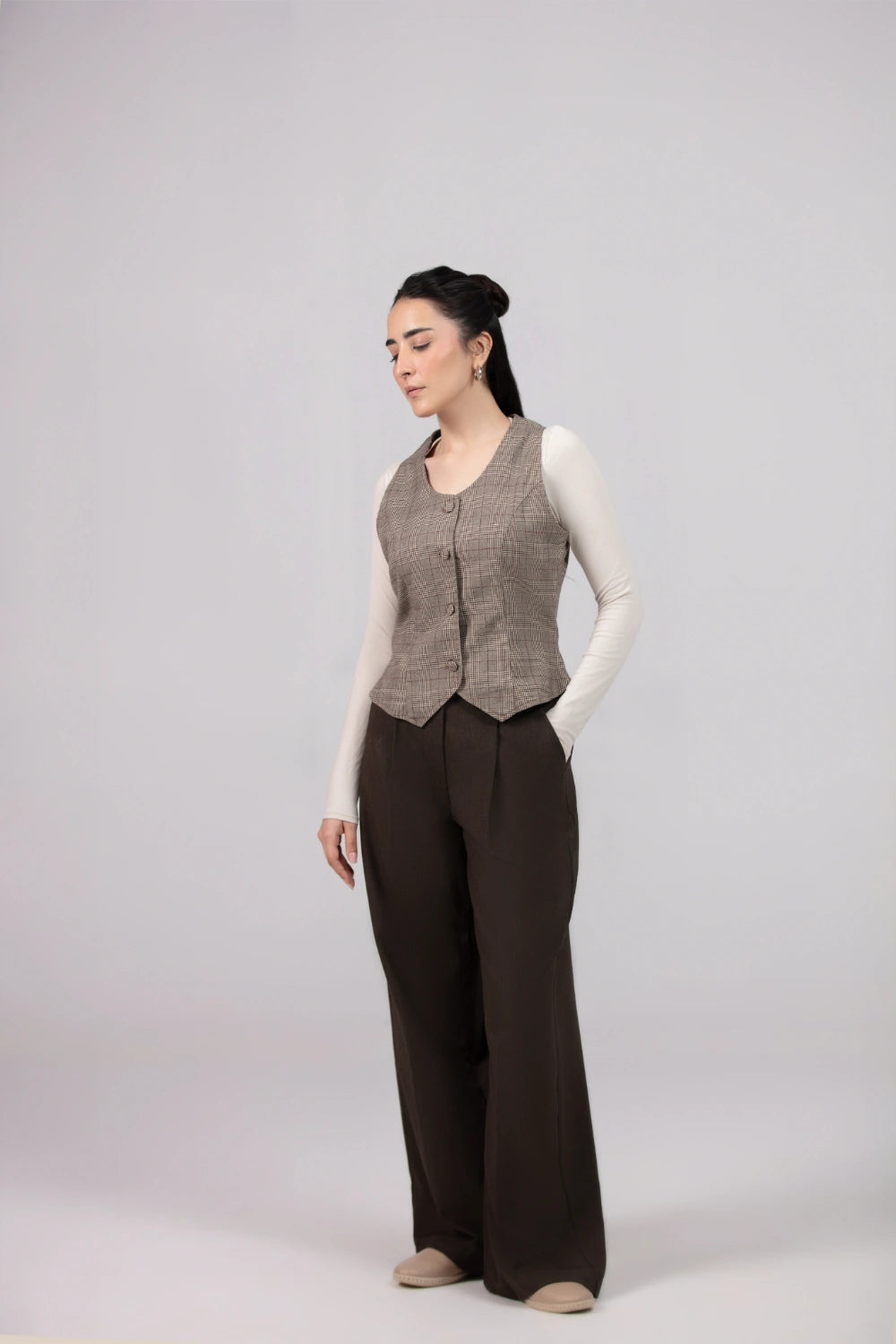 This formal to semi-formal waist top is made from a comfortable, durable fabric blend. It features a flattering V-neckline and a clean front opening, finished with matching fabric-covered buttons for an elegant touch.