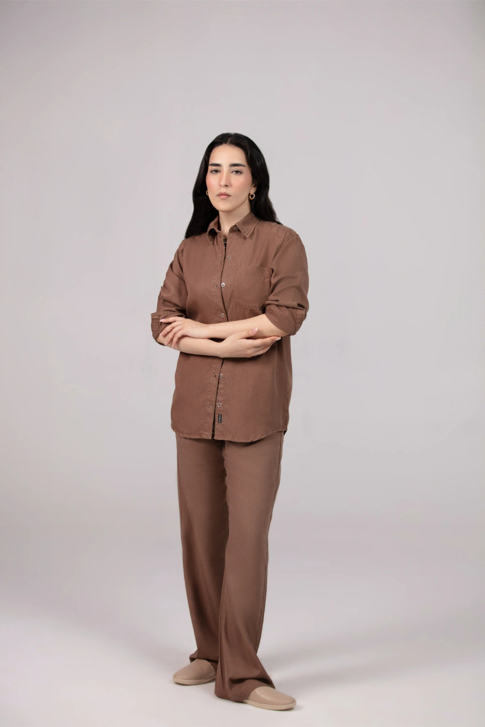 This relaxed fit button down shirt is made from a soft linen and cotton blend with a light, airy weave. It features long sleeves with buttoned cuffs, a neat turndown collar, and a chest pocket at the front.