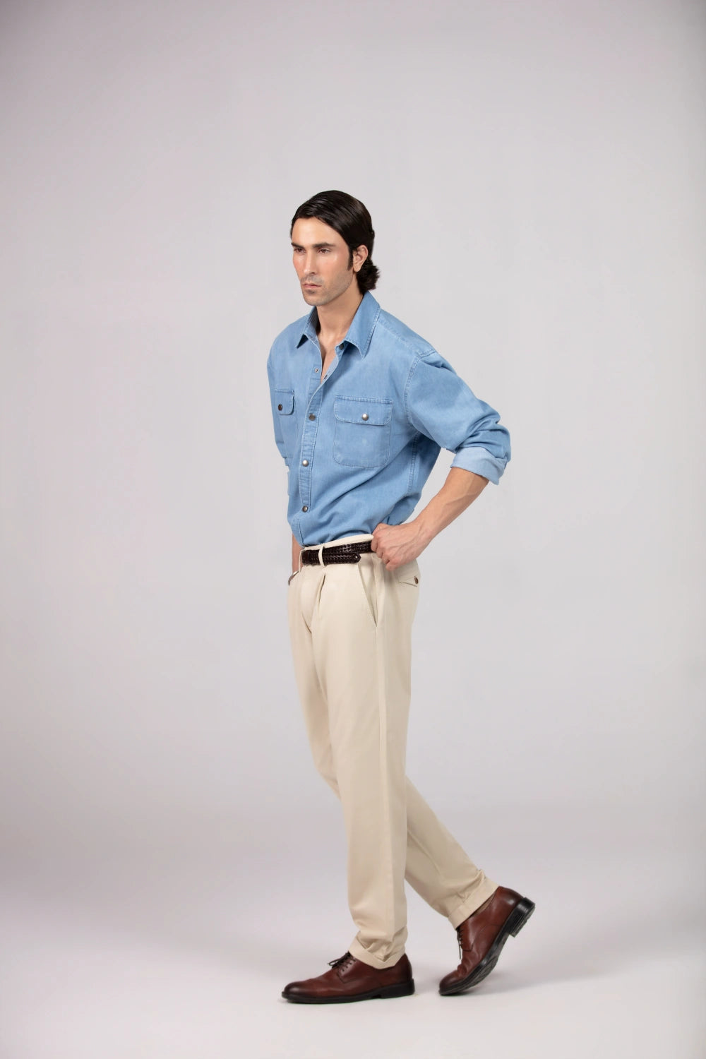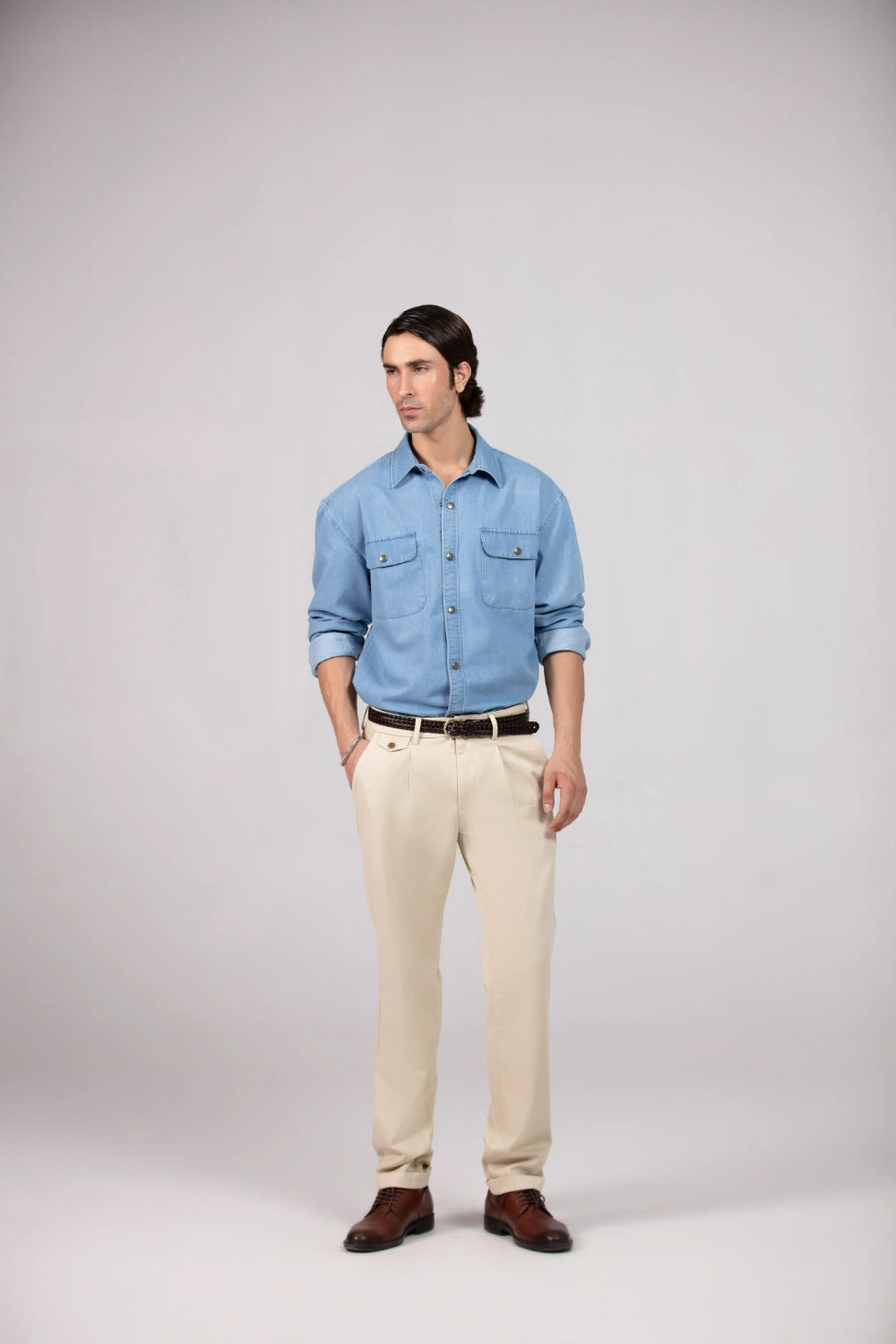 These men’s chino pants offer a semi-formal to formal style with a straight fit and a 32-inch inseam across all sizes. Featuring a button zip-fly closure, front cross pockets, and a single pleat at the front for added structure. The nonfunctional waist pocket flap and turnover hem complete the polished look.