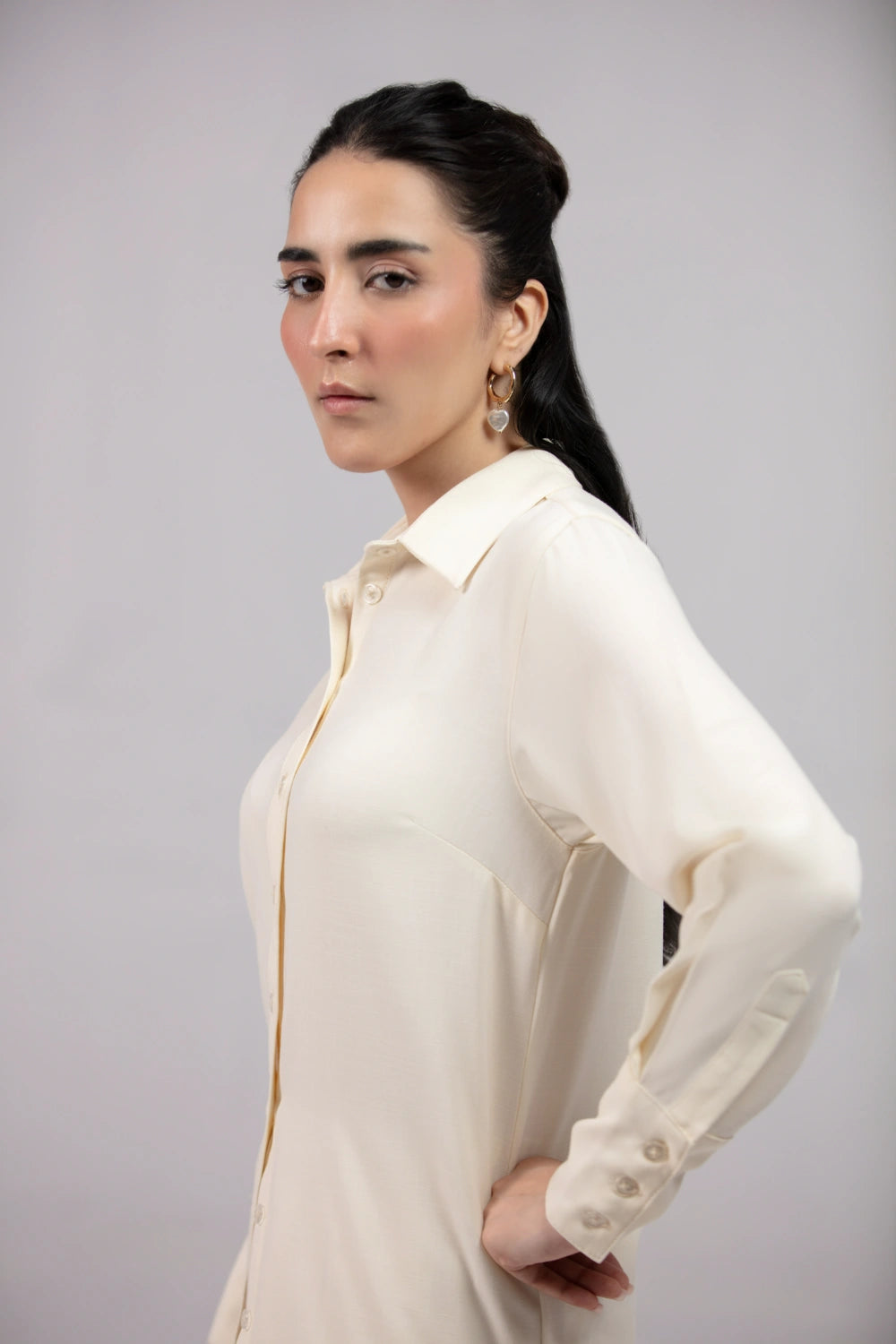 This regular fit shirt is made from a soft, luxurious fabric blend. It features buttoned cuffs, a two-piece turn-down collar, and a side dart for a sharp, tailored look. Perfect for both casual and formal wear.