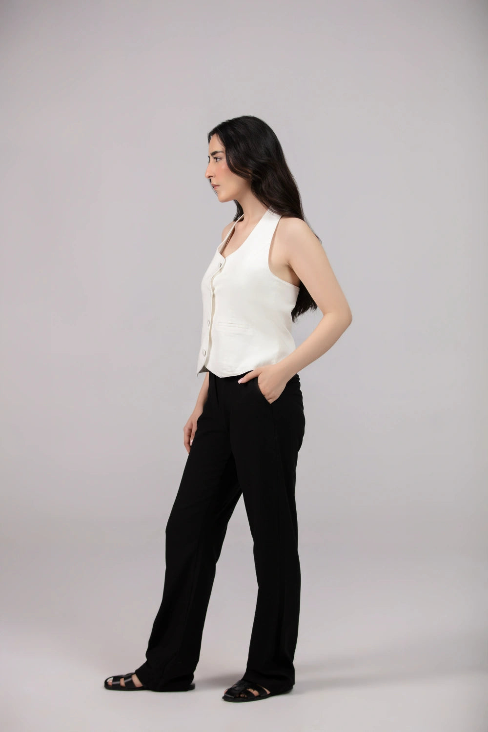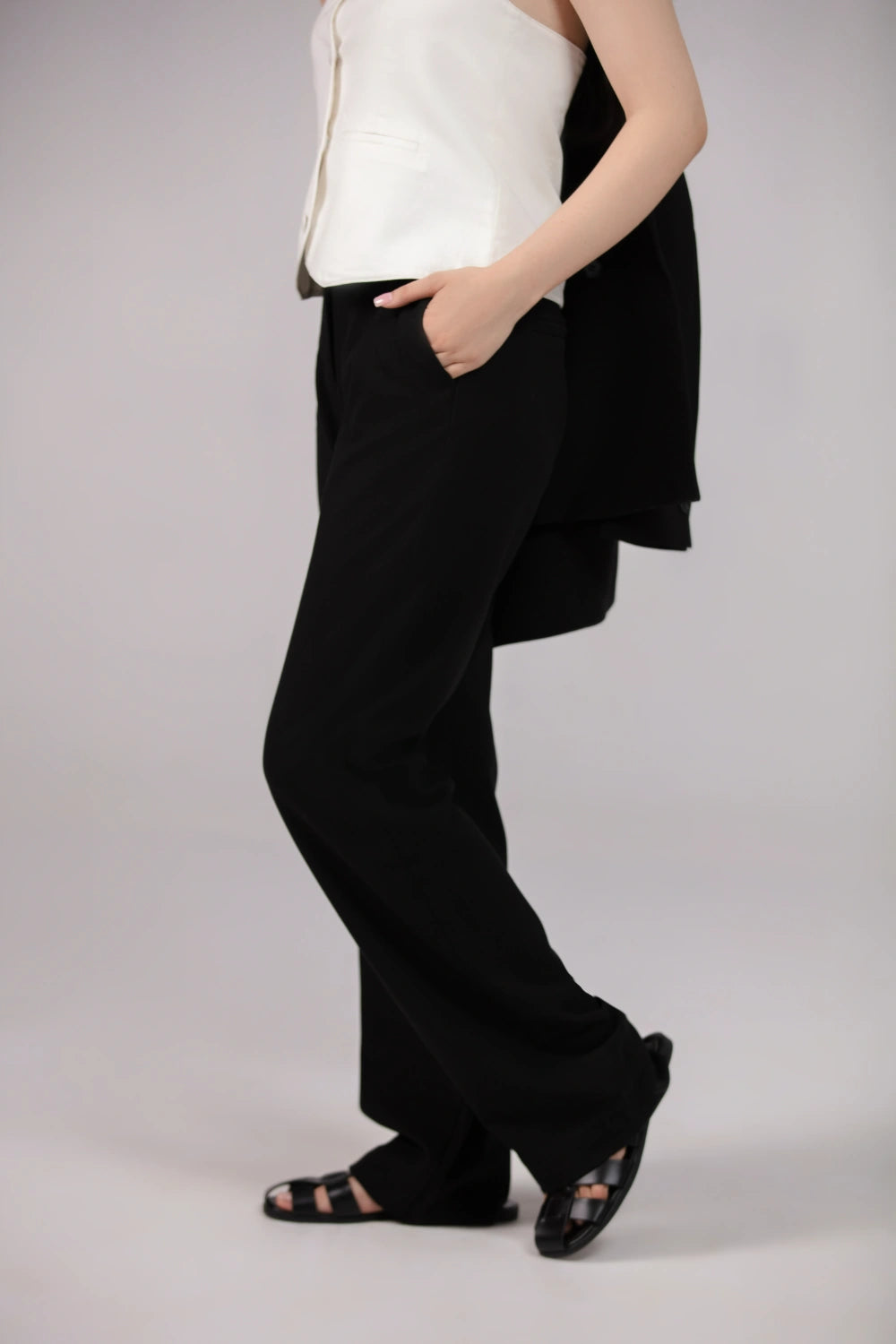 These straight fit pants for women are made from a premium blend that offers comfort and a natural stretch. The wrinkle-resistant fabric gives them an elegant drape. They come with two front cross pockets, a back welt pocket, and a classic zip closure for a secure fit.