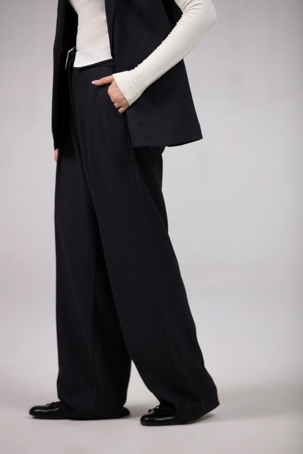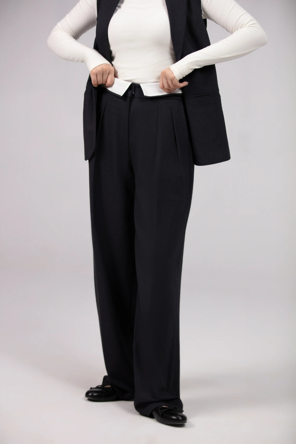 These Turnover Waist pants showcase a striking crisp white turnover waist, double pleats at the front waist and a fall like no other pant. Front cross pockets and back single welt pockets provide practical storage with a refined finish.
