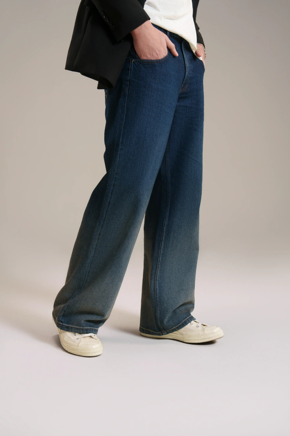 Redefine your denim rotation with these Wide-Leg Denim Trousers. Designed with an exaggerated silhouette, they deliver a bold, architectural look without compromising on comfort. The deep indigo wash features strategic fading for a vintage-inspired feel, while the relaxed fit through the leg ensures effortless movement. Whether styled with a structured jacket or worn casually with sneakers, these trousers are a versatile staple for the modern wardrobe.