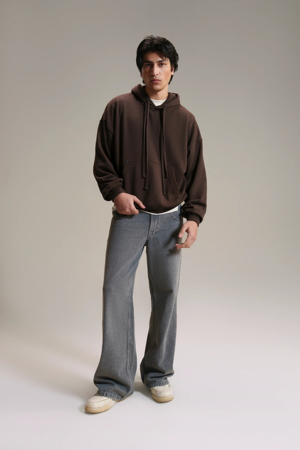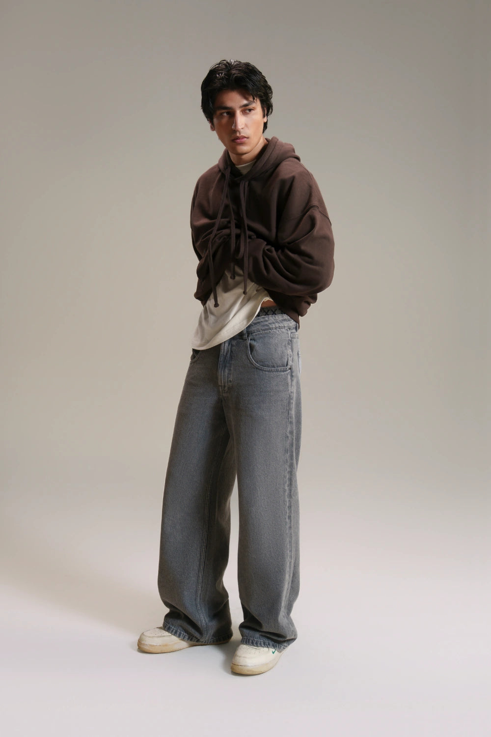 Our Grey Wide-Leg Denim Trousers form the ultimate foundation for a modern, oversized silhouette. Defined by a clean charcoal wash and a dramatic wide-leg profile, they offer a sophisticated alternative to classic blue denim. The mid-rise waist and relaxed straight-drop drape deliver effortless comfort while maintaining a sharp, directional edge. Whether styled with a tucked-in tee or layered under an oversized shacket, these trousers bring a contemporary, architectural feel to everyday dressing.